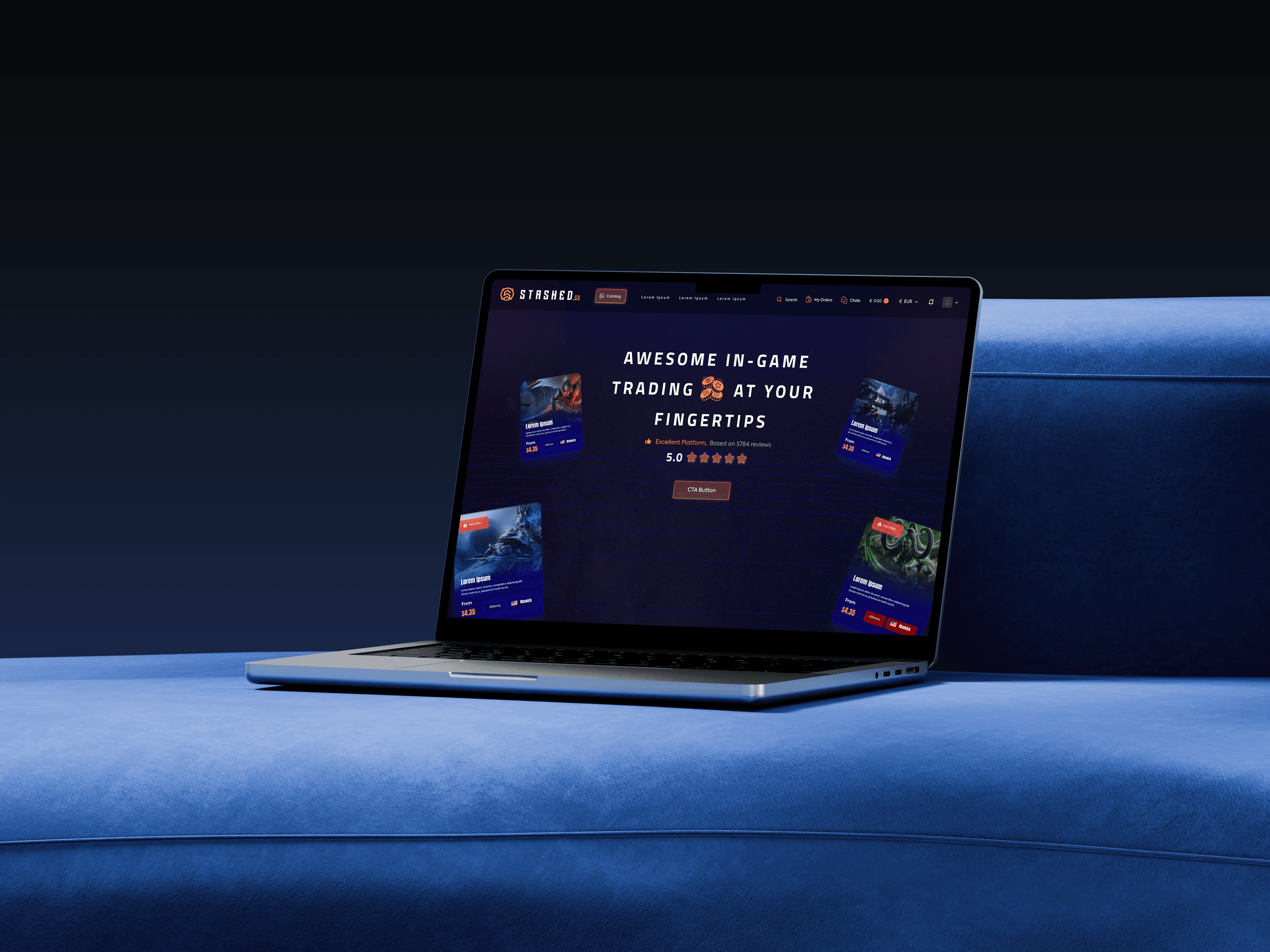 Stashed is a cryptocurrency-powered in-game trading platform that enables gamers to buy, sell, and exchange digital assets seamlessly. Designed with a futuristic glow aesthetic, it blends vibrant visuals with a smooth and intuitive user experience.